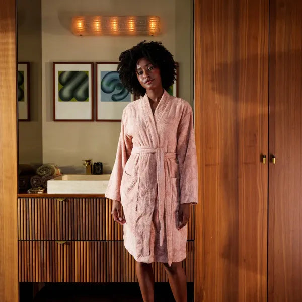 Zachte Unisex Kayori badjas kort, gemaakt van hoogwaardig bio-katoen