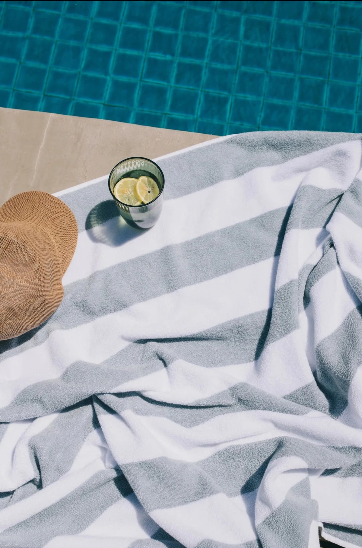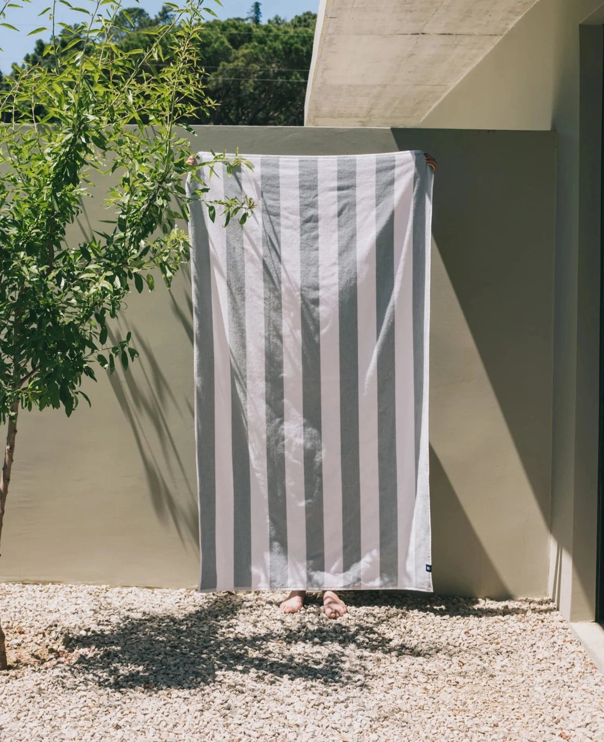 De Gibalta strandlakencollectie is geïnspireerd op de Gibalta vuurtoren in Oeiras en is een herinterpretatie van de klassieke strand- en zwembadlakens uit de jaren '40. Met verticale strepen in twee kleuren roepen ze een chique vintage beeld op.
