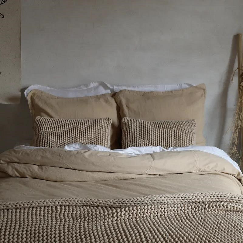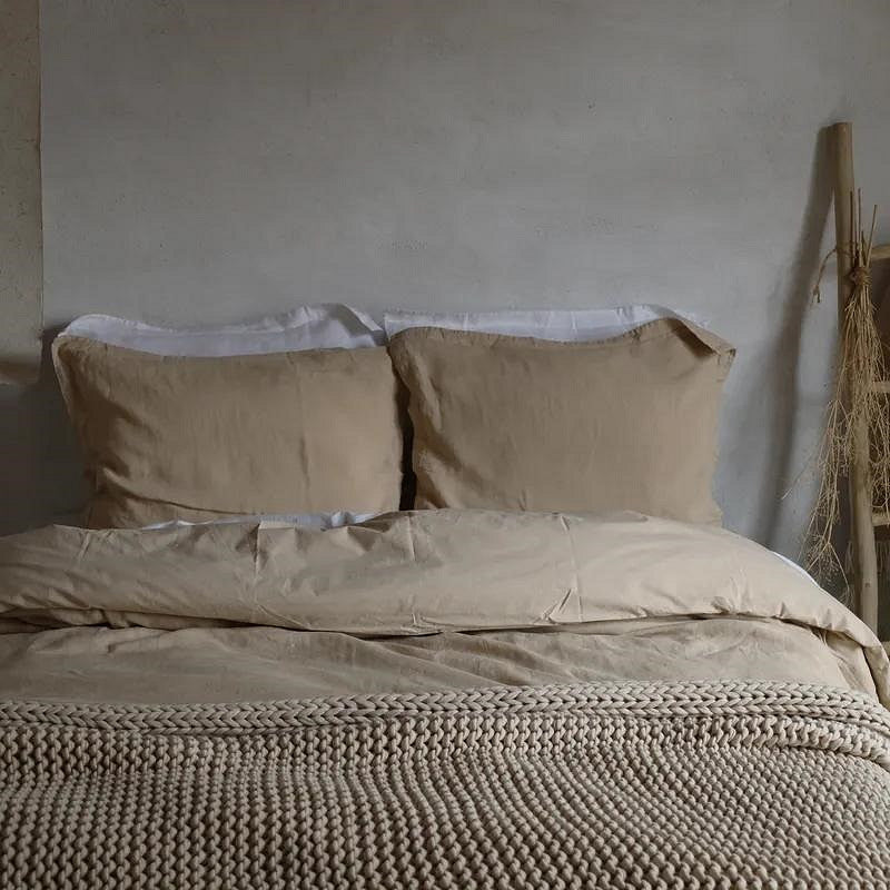 Een comfortabele combinatie: een voorkant van 100% puur linnen en een achterkant van crispy katoen percal.