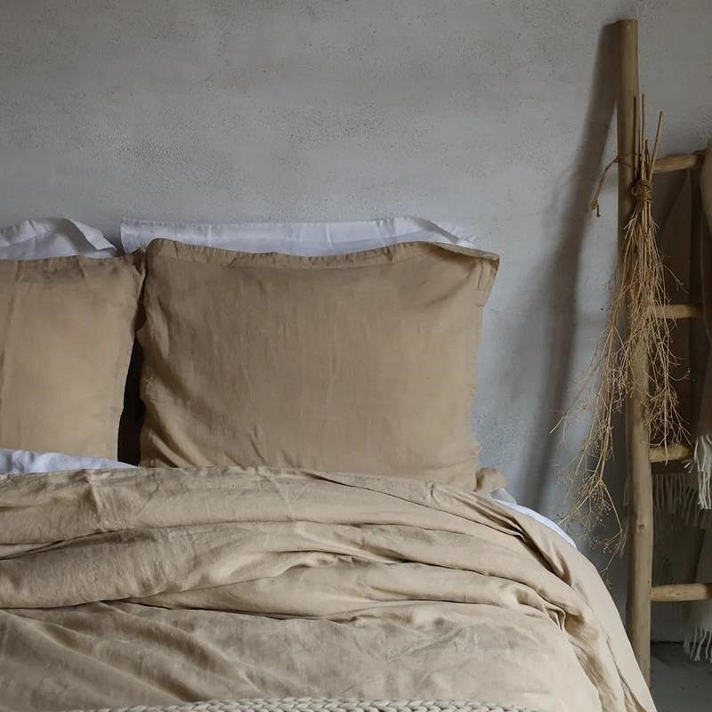 Dubbelzijdig dekbedovertrek waarvan de voorkant gemaakt van luxe linnen en de achterkant van hoogwaardig katoen in Beige variant