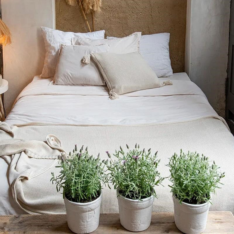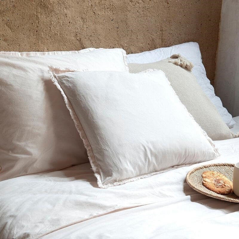 Ambachtelijke afwerking: De kussensloop en de lange zijdes van het dekbedovertrek zijn afgewerkt met een handgemaakte gerafelde rand voor een unieke en stijlvolle uitstraling.