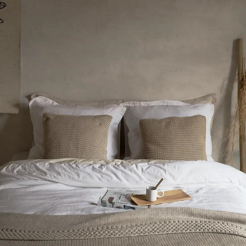 Een comfortabele combinatie: een voorkant van 100% puur linnen en een achterkant van crispy katoen percal. Verkrijgbaar in diverse vergrijsde tinten.