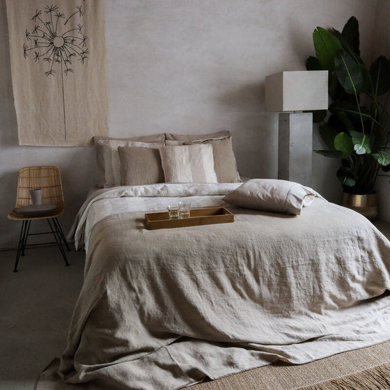 Dekbedovertrek Noa Linnen 186gsm Off-white/beige streep