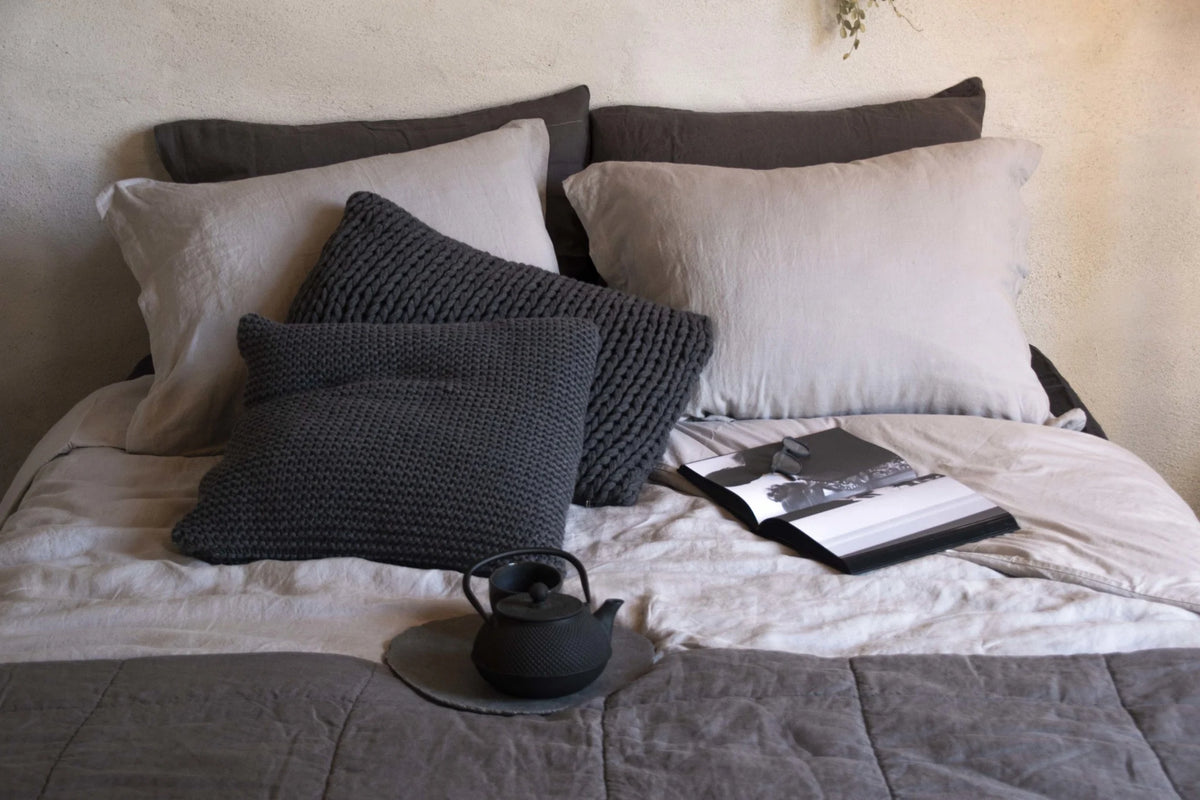 Cloudy Grey Remy kussensloop: een voorkant van 100% puur linnen en een achterkant van crispy katoen percal