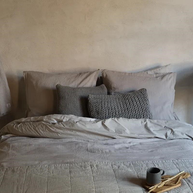 Een comfortabele combinatie: een voorkant van 100% puur linnen en een achterkant van crispy katoen percal. Verkrijgbaar in diverse vergrijsde tinten.